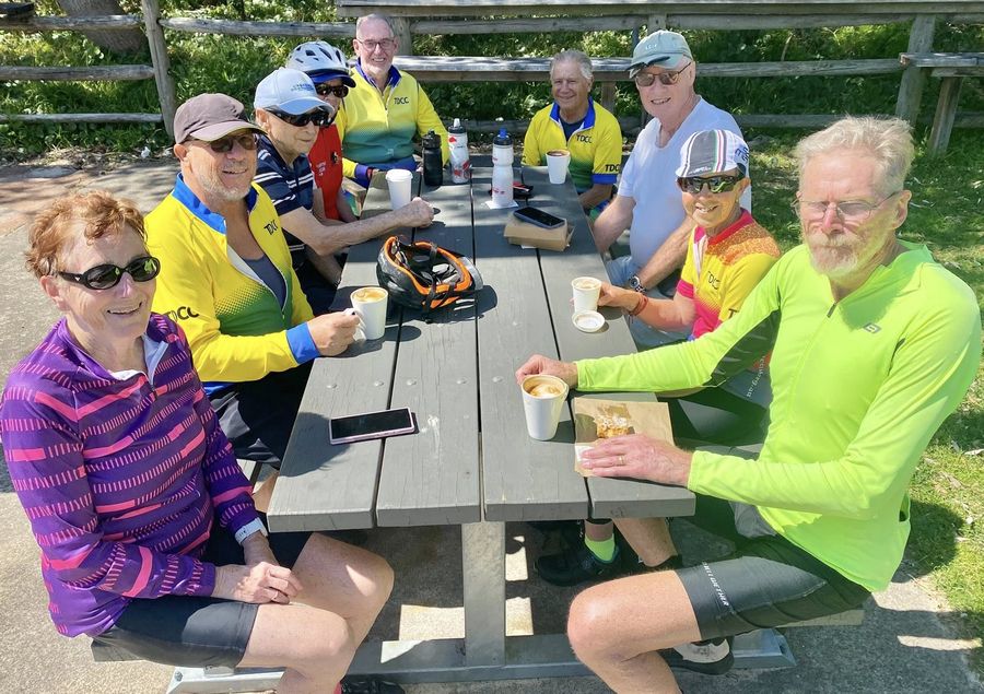 ![]() Morning tea at Better Days. Nikki's photo.- 10 January 2025 Could only find Group 2 today. T&DCC Coasters JDR - JDR loop ride report 10 January 2025 On arrival at JDR. On arrival at JDR we thought that the turnout would be low due to the forecast, however being optimists, 11 Group 2 members turned up to brighten our day. Warren P from Group 1 was also present. Barry advised that he would only ride to The Entrance and back, while Warren decided to ride home as he had ridden to JDR. No sign of the other group 1 riders, although we sighted Rod on Strava riding solo in the Watagans earlier in the day. The riders in sign-on order were James, Barry, Len, Angela, David R, Virginia, Doug, Chris B, Daryl G and Tony. James was the ride manager and Doug the sweep. JDR to Bateau Bay Beach After the ride briefing, we set off towards the bike path. On leaving JDR we decided to try out the bike path all the way to the Entrance, so we headed across WBD to Brisbane St, then turned right onto Oleander St then left into Evans Rd that led us to the start of the bike path next to the Vietnams Vets village. We were not 100% sure on the status of the track so we advised our members to keep a look out for fallen branches and twigs on the path following the high winds from Thursday. We only encountered on small tree covering a small part of the track but otherwise a few twigs, lot of leaves and bark that did not interfere with the ride. As mentioned previously the new section of the path is great, lots of other members of the public thought so also, as there were lots of joggers, walkers, and riders without helmets etc to testify to that fact. As we had to change over to the other side of WBD to get to our favourite watering-hole at North Entrance, we were lucky that there were lots of pedestrian barriers with islands to assist us in this task. So, we crossed just before the turn-off to the said watering-hole and loos. After a short break at North Entrance, we crossed the bridge and ventured towards Bateau Bay on the coastal roads. However as we topped the hill above the Entrance SLSC, we noticed the tail group had dropped out of sight. So, after some enquiries we found out that Chris had a problem with his cleats, that is he could not get out of them while stopping to give way to a pedestrian, thankfully he was ok and showed no signs of missing bark. We are not quite sure how he solved the problem, but all sorts of fixes were suggested. Soon we were on our way again to BBB. On arrival at BBB as expected there were lots of tourists that included some seniors, who asked our members questions about our bike riding It did not look like any of them would take up riding soon. After 10 minutes or so at BBB we advised the non-riding members via WhatsApp that we were delayed due to the mechanical problems just mentioned. To our surprise Nic came back to us and asked how many were riding so she could reserve a table at Better Days as the Café was crowded. BBB to Better Days Cafe That done we were on our way again crossing The Entrance Road to eventually join up with Eastern Rd and Tumbi Rd. Those roads are a delight to ride on as they in most parts have a shoulder of 3 metres or so. We bypassed Sir Joseph Banks Drive to catch up on some time after our earlier delay. On arrival on Wyong Rd, we crossed using a convoluted system of pedestrian crossings at the lights, once across it was full speed downhill to the Better Days Café. The Better Days Cafe for Coffee. On arrival at the Café, we were greeted by Nic who was inside the café as there were so many people outside, it looked like a mother and babies’ day out. In the end, some of the group managed to get a table outside the café. All settled in, we were greeted by Carol and Rolf who were not riding today. Carol was of course chasing up members who had not rejoined for 2025, so don’t forget, time to rejoin. Danny was not here today as he had probably gone to Paris for the weekend. The two people bringing the drinks and food to the tables were as old as us, or maybe older, they are volunteers, and they do a great job with a pleasant attitude that comes with a laugh and a smile. The staff told us it would take 20 minutes to get our coffee and food, however it only took 10 minutes, a good effort with so many people present. The Better Days Cafe to JDR After our bellies were full, we reluctantly left the Café and headed back to The Entrance, where we crossed the bridge, and then joined the original bike path behind the car park just as you come off the bridge. The first section was in a state of disrepair with pavers sticking up as though they were gasping for air, thankfully the CCC had painted them yellow making it easier to avoid them. We followed the path past the Fisherman’s Co-op then on the bike path leading to the new section. The new path is hillier than the roadway, and it could be felt in our muscles, or what is left of them. The pathway was clear of most of the twigs and small branches that were there on our way South. We noticed various people along the way kicking them off the track, good effort people. We stopped at the carpark along the track where we said our goodbyes to the Westies who would be leaving us at Evans Rd. Daryl who had to go to a kid’s party and took the short way back along WBD. The rest of us continued along the pathway and turned up Oleander St to join WBD before crossing up over to Bungary Rd to then JDR. After saying our goodbyes, we were off home to enjoy the weekend. Safety. No safety incidents to report. A most pleasant ride. Helping hands informal concept and recovery bay. Best wishes to Estelle, Lois, Jan, Pedro, and Mike who are in recovery mode or receiving treatment. Sorry if we have missed anyone. Now that Danny is back, he is now providing his retrieval service, thanks Danny. Unfortunately, Danny had other commitments today, and could not be with us. The Ride. The ride was about 46km, the average speed was abou