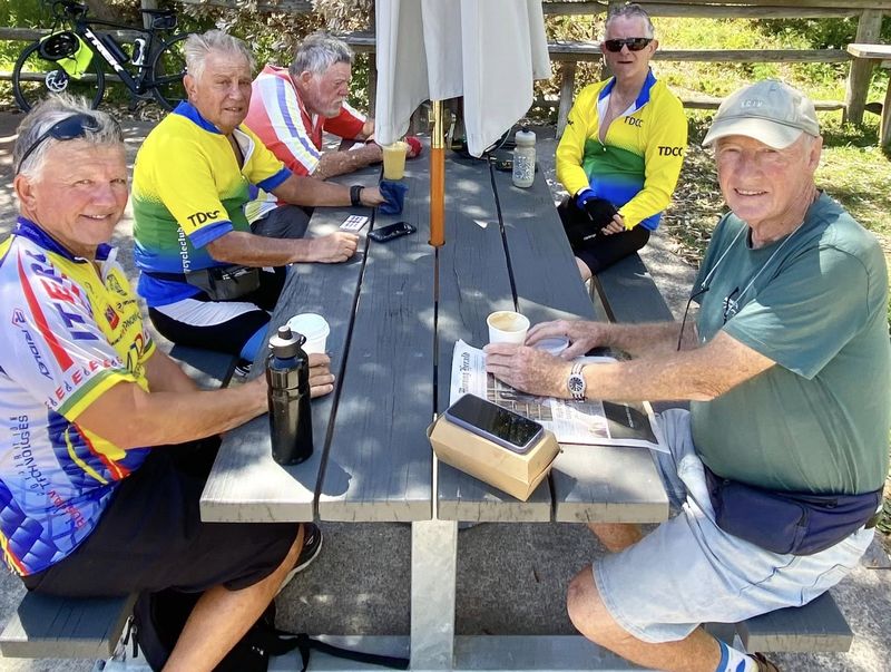 | Friday 5 December 2025 - TDCC Group Rides Skylarkers - Clockwise Tuggerah Lake Loop. 65km. Coffee at Better Days. Thanks Gaz! Coasters - T&DCC Coasters JDR-Budgewoi Lake loop. 5 December 2025 Deciding what to do, ride or no ride due to heatwave. As always, the ride managers must decide whether to ride, not ride, or have a shortened ride to suit the conditions. After a worrying night of me trying to work out the best method, the senior members of the club were contacted for their opinion, it was decided to shorten the ride to avoid arriving at the Beach Haus for coffee at the hottest time of day. We used the club's document relating to riding in the high temperatures and the BOM predictions for temperature and humidity. We found that the temperatures were just inside the boundary and the humidity levels were ok, the dew point that is a critical measurement for safe riding was well within the safe zone, so all being deemed safe we decided to go ahead with a shortened ride. On arrival at JDR. On arrival at JDR we were greeted by gentle ocean breezes that kept us feeling like it was going to be a great ride. We had 10 riders ready start the ride. They were, in sign-on order - James, Rolf, Keith, David R, Daryl, Len, Col, Chris, Doug and Virginia who rode part of the way. We also had a visit from Ray [88] who cycled from Budgewoi but decided a loop of the lake was too far at this stage, after coming from a cold climate. James was the ride manager, Doug and Chris shared the sweep duties. The ride. We were a bit late getting away as our lads decided to have a long chit-chat trying to solve the problems of the world. However, just as we were about to start, James’s bike threw a tantrum and dropped the chain while in the process of unloading his bike. Luckily Daryl and Keith were close by and had it fixed in no time, thanks guys. All set to go and we headed for Harry Moore Oval, then Gorokan, where we had a programmed stop for a sip of water and a quick chat. From there it was along a few back streets before joining Dudley St. When we got near the school, we stopped to say goodbye to Virginia who had ridden from home. Luckily, we all obeyed the road rules as the boys in blue were parked on the other side of road, probably checking us out for illegal bike use. All legal, so ok to go. After Dudley St, it was onto Panorama Avenue, then we crossed the horrible non-shared path on the bridge over Wallarah Creek, one day we might have a shared path, not the CCC responsibility. We then had a regroup after crossing the bridge and cycled along the beautifully shaded bike path that was pleasantly cool due to the trees and the breeze off the lake. Col left us at this point to return to his home in Blue Haven Heights as he had ridden to JDR. Our next stop was Edgewater Park where we all commented about how cool it was due to the breeze coming across the lake. After leaving Edgewater Park we set off towards Norah Head, no incidents along the way, but as we were crossing the bridge over the canal joining the two lakes, an old bloke in a motorised wheelchair abused Chris with some nasty words, Chris in his calm manner let his remarks go through to the keeper. (a saying in cricket if you don’t want to play the ball). Safely over the bridge, we set out for Noraville via the old road beside the golf course to get a bit of shade and avoid riding on the black bitumen. At Noraville, Doug, Keith, Len and David left us for coffee at Lou’s Café. Daryl, Chris, Rolf and James headed to the Beach Haus at Norah Head for coffee where we were greeted by Danny, no Nicolette as she had an appointment. So, us blokes talked for an hour before setting off home or back to JDR to pick up our Iron Horses. In the circumstances a great ride without too much discomfort, thanks to all those riders who turned up, and Doug and Chris for sweeping. Safety. No problems today, we all behaved ourselves. Helping hands informal concept and recovery bay. Best wishes to all our members and their partners who are receiving treatment or in recovery mode, also to Nicolette who had a fall and damaged her wrist, Nic has advised us she will not be riding for some time. Xmas party. Thanks to members and their partners who helped at the Christmas party as mentioned in the speeches made at the Xmas party, and to all those members and partners who cleaned up the Kitchen, washed all the crockery and silverware, and tidied up the Hall, and helped Barry and James with all the equipment being loaded into their cars. Obviously, we could not thank them beforehand as we did not know who would be helping. As it was, nearly everyone helped who could. James |