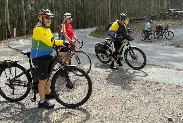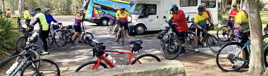 ![]() Re-group in Blue Wren Drive - 23 January 2026 23 January '26 COASTERS Ride Report - After wild Southerly winds yesterday, the weather behaved as predicted which was a mild cloudy day with light winds that were necessary to keep us all cool as the temp slowly climbed through the morning ride. The promise of good riding condtions attacted 19 Riders overall. 18 at the start and Linda joined us on the way to San Remo bridge. We had a new rider Kevin O'Connell at the JDR start together with John L'Estrange who we have not seen for quite some. Both were welcomed at the start. The sign-on order was Barry, Tony, Carol, Maree, Rolf, Ray, Len, Col, Keith, Nicolette, John, James, Graeme, Merrlyn, Chris, Daryl, David, Kevin and Linda. The RIDE : Barry was the Ride manager and Keith and Len agreed to be the sweeps (Thanks). On Whatsapp, Barry had indicated a few changes to the scheduled Ride calendar. As it turned out fate stepped in to create some additional changes. From JDR we took our usual route west over the highway, through Chelsea Close then Crossingham St past the Sailing Club onto Main Rd Toukley. Over Toukley Bridge, around the back of Gorokan shops and came back out onto the main Rd lights. Traffic was reasonably light. Onto Dudley St then Panorama Ave and along the cycleway to San Remo bridge. The plan was to go under the bridge as usual, but due to the current high tide the cycleway under the bridge was under water. Undeterred we went around a couple of back streets then crossed safely at the San Remo shops lights. We did the Roper Rd loop through Bluehaven, crossed over the highway and up to the Doyalson lights. Then continued along the highway to Tall Timbers Rd, Chain Valley Bay, and down to Josh Porter Reserve for a regroup and bathroom break. As we were travelling along the highway, Carol's bike battery stopped working for a while. Luckily it started again prior to Tall Timbers rd and got her most of the way to Lakes Beach before failing again. It is the original battery with more than 18,000 k's up! Refreshed after a short stop, we then got onto the cycleway heading towards Mulloway rd, only to find Council has closed the old timber bridge so we had to continue east on the other cycleway fork which took us to Carters rd, then left onto the highway all the way to the Kanangra Drive lights. We all had a nice ride through the SCA giving the faster riders a free rein to take off, then we regrouped at the sideroad next to Matt's diner. Along Elizabeth Bay Drive with a nice cooling southerly. We were at Lakes beach for coffee before we knew it. Carol limped in with her dead battery but did remarkably well to get there. Danny met us for coffee and we bumped into some old sailing/kayaking friends Graeme and Sharon Bundock. I left at noon to get home and james kindly agreed to lead the group back to JDR. The Ride was listed as 40k's. Riding from home I made 55k's and Chris and Dave much more. We were riding a reasonable Coasters speed of 20-22kmh most of the way. [John L'Est started at Umina, caught the train at Woy Woy to Wyong, did the complete ride, then returned the same way, flattening two batteries and did 108km. Not bad for an 89yo.] No major issues apart from Carol's bike that struggled most of the way but she managed it all well. Enjoy the Australia day long weekend. Watch out for the double demerits and very warm Sunday forecast. See you next week. Baz ![]() Nikki and friends on today's ride - 23 January 2026 |