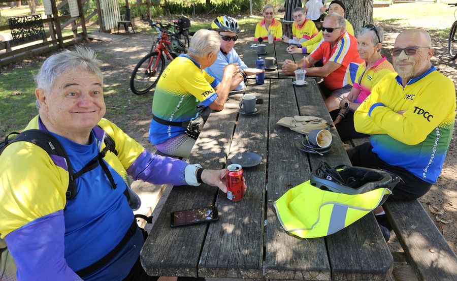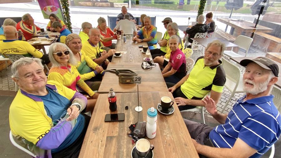 | Friday 5 December 2025 - TDCC Group Rides Skylarkers - Clockwise Tuggerah Lake Loop. 65km. Coffee at Better Days. Thanks Gaz! Coasters - T&DCC Coasters JDR-Budgewoi Lake loop. 5 December 2025 Deciding what to do, ride or no ride due to heatwave. As always, the ride managers must decide whether to ride, not ride, or have a shortened ride to suit the conditions. After a worrying night of me trying to work out the best method, the senior members of the club were contacted for their opinion, it was decided to shorten the ride to avoid arriving at the Beach Haus for coffee at the hottest time of day. We used the club's document relating to riding in the high temperatures and the BOM predictions for temperature and humidity. We found that the temperatures were just inside the boundary and the humidity levels were ok, the dew point that is a critical measurement for safe riding was well within the safe zone, so all being deemed safe we decided to go ahead with a shortened ride. On arrival at JDR. On arrival at JDR we were greeted by gentle ocean breezes that kept us feeling like it was going to be a great ride. We had 10 riders ready start the ride. They were, in sign-on order - James, Rolf, Keith, David R, Daryl, Len, Col, Chris, Doug and Virginia who rode part of the way. We also had a visit from Ray [88] who cycled from Budgewoi but decided a loop of the lake was too far at this stage, after coming from a cold climate. James was the ride manager, Doug and Chris shared the sweep duties. The ride. We were a bit late getting away as our lads decided to have a long chit-chat trying to solve the problems of the world. However, just as we were about to start, James’s bike threw a tantrum and dropped the chain while in the process of unloading his bike. Luckily Daryl and Keith were close by and had it fixed in no time, thanks guys. All set to go and we headed for Harry Moore Oval, then Gorokan, where we had a programmed stop for a sip of water and a quick chat. From there it was along a few back streets before joining Dudley St. When we got near the school, we stopped to say goodbye to Virginia who had ridden from home. Luckily, we all obeyed the road rules as the boys in blue were parked on the other side of road, probably checking us out for illegal bike use. All legal, so ok to go. After Dudley St, it was onto Panorama Avenue, then we crossed the horrible non-shared path on the bridge over Wallarah Creek, one day we might have a shared path, not the CCC responsibility. We then had a regroup after crossing the bridge and cycled along the beautifully shaded bike path that was pleasantly cool due to the trees and the breeze off the lake. Col left us at this point to return to his home in Blue Haven Heights as he had ridden to JDR. Our next stop was Edgewater Park where we all commented about how cool it was due to the breeze coming across the lake. After leaving Edgewater Park we set off towards Norah Head, no incidents along the way, but as we were crossing the bridge over the canal joining the two lakes, an old bloke in a motorised wheelchair abused Chris with some nasty words, Chris in his calm manner let his remarks go through to the keeper. (a saying in cricket if you don’t want to play the ball). Safely over the bridge, we set out for Noraville via the old road beside the golf course to get a bit of shade and avoid riding on the black bitumen. At Noraville, Doug, Keith, Len and David left us for coffee at Lou’s Café. Daryl, Chris, Rolf and James headed to the Beach Haus at Norah Head for coffee where we were greeted by Danny, no Nicolette as she had an appointment. So, us blokes talked for an hour before setting off home or back to JDR to pick up our Iron Horses. In the circumstances a great ride without too much discomfort, thanks to all those riders who turned up, and Doug and Chris for sweeping. Safety. No problems today, we all behaved ourselves. Helping hands informal concept and recovery bay. Best wishes to all our members and their partners who are receiving treatment or in recovery mode, also to Nicolette who had a fall and damaged her wrist, Nic has advised us she will not be riding for some time. Xmas party. Thanks to members and their partners who helped at the Christmas party as mentioned in the speeches made at the Xmas party, and to all those members and partners who cleaned up the Kitchen, washed all the crockery and silverware, and tidied up the Hall, and helped Barry and James with all the equipment being loaded into their cars. Obviously, we could not thank them beforehand as we did not know who would be helping. As it was, nearly everyone helped who could. James |