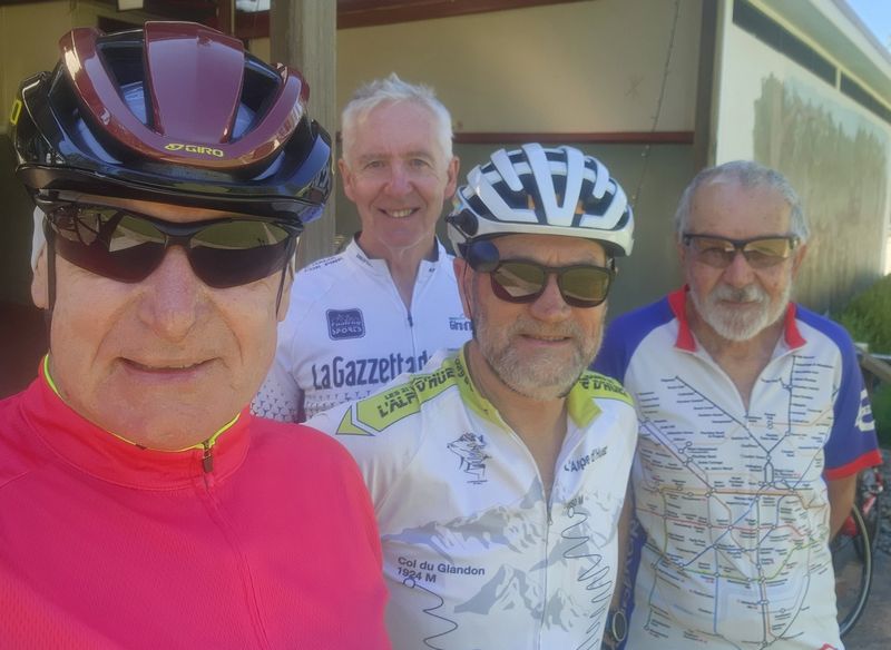 ![]() Residual riders and Danny at the Beach Haus. Rod behind the camera. - 26 January 2026 T&DCC Group 2 Peel St-BBB-Kvale-The Entrance-Norah Head-Peel St loop On arrival at Peel St. The car park was empty, due to Nic and Michael riding from JDR and the rest of the riders, except Linda and James, rode from home, even Karen, who rode from the Nth Entrance. Barry advised that he would only be riding to The Entrance. Before setting off, Linda and Karen got nominated for the committee and signed all the paperwork. After that we had a quick briefing about the ride and mentioned there was a chance of flooding on the bike path at Lucinda Ave. The riders in sign-on order were James, Michael, Linda, Nic, David R, Barry, Karen, Keith, Jill, Trevor and Chris Boi. James, the ride manager, and Keith, the sweep, then Chris. Before we started the ride, Jill and Trev advised us they would meet us at North Entrance. Chris also rang and said he had a flat tyre and not to wait for us, and that he would catch up with us, bad luck on his new bike. All ready to go, we set off towards the new bike path. All went well until we got to Evans Rd just past Oleander Rd, the CCC had decided to repair the road and the lolly-pop man and girl were on duty, luckily it was not a timed gate that blocked us, with only a few cars we were soon on our way. Past that hurdle, it was onto our lovely bike path that has lots of curves, and roller coasters, for those not familiar with the pathway, lots of fun though, and it was good to see lots of others enjoying the path. Due to the high winds of late, one tree decided it had enough and laid down partly covering the track at head height, Our skilled riders managed to swerve around the branch without mishap. On arrival at North Entrance, we were greeted by Jill and Trevor who prefer to ride on the road. After a short rest under the Old Oak Tree, we headed for Toowoon Bay. Unfortunately, David’s bike decided to get in on the act and threw the chain. While a fix was carried out, the rest of us waited in the shade up the road. All fixed, we had our next stop at the Swadling Park at Toowoon Bay. Next stop was BBB, still no sight of Chris. After a longer break than usual at BBB we wondered where Chris was. A few phone calls later and we were advised he was nearly at BBB. On his arrival, it looked as though he had been pushing hard as he was sweating like he was in the Tour Down Under. Good effort Chris! The next stage of the ride was crossing The Entrance Rd at Passage Rd, then through the sports field. Unfortunately most of us took the wrong path and had to walk up a steep mound to get back onto the correct path - James’s fault. From there it was back to The Entrance via Eastern Rd and Lucinda Rd that was clear most of the way, except at the end where it was covered in water up to 25cm deep. Luckily the path was clear. After a stop at Long Jetty, we were soon crossing the bridge and on our way to Norah Head up WBD, for a change. Karen left us at Nth Entrance. Soon after, Keith, Dave, Jill and Trevor left us at Noraville for home while the rest of us headed for the Beach Haus at Norah Head. Lots of tourists around but thankfully the Café had plenty of spare seats inside with the Miner birds. We were greeted by Rod and Danny who must have grabbed us the table. After coffee, only James and Linda headed back to Peel St, Nic and Michael rode a few extra kilometres before returning to JDR where they had left their cars. Safety. No incidents to report today, a nice safe ride. Helping hands informal concept and recovery bay. Barry informed us today that Jan, Col’s wife, was in not such good health, best wishes to Jan and hope you get better quickly. Also, best wishes to all members and their partners who are not feeling the best at the moment. The Ride. The ride was about 50kms, the weather was great and the company great. It was noticed that Virginia was not present as she was in Adelaide enjoying the Tour Down Under, with her brother John. Her pics looked great. James ![]() Heading back after lunch. - 21 January 2026 Danny's pic |